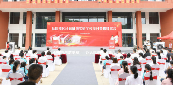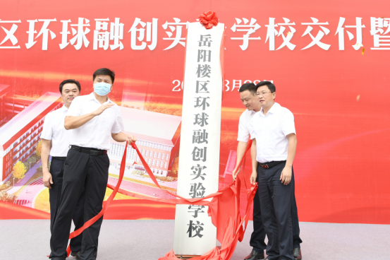 岳阳广电全媒体讯(岳阳楼区融媒体中心 任可 戚壮波)8月28日上午,岳阳楼区环球融创实验学校交付暨揭牌仪式举行。市国资委党委书记、主任白锁铭,市洞庭新城公司党委书记、董事长吴亚雄,区委书记曾平原,区委副书记、区长白再兴共同为环球融创实验学校揭牌。区委副书记、区委办主任胡晓明主持仪式,市洞庭新城公司党委委员、副总经理马勇,区委常委、副区长邓建华等出席。