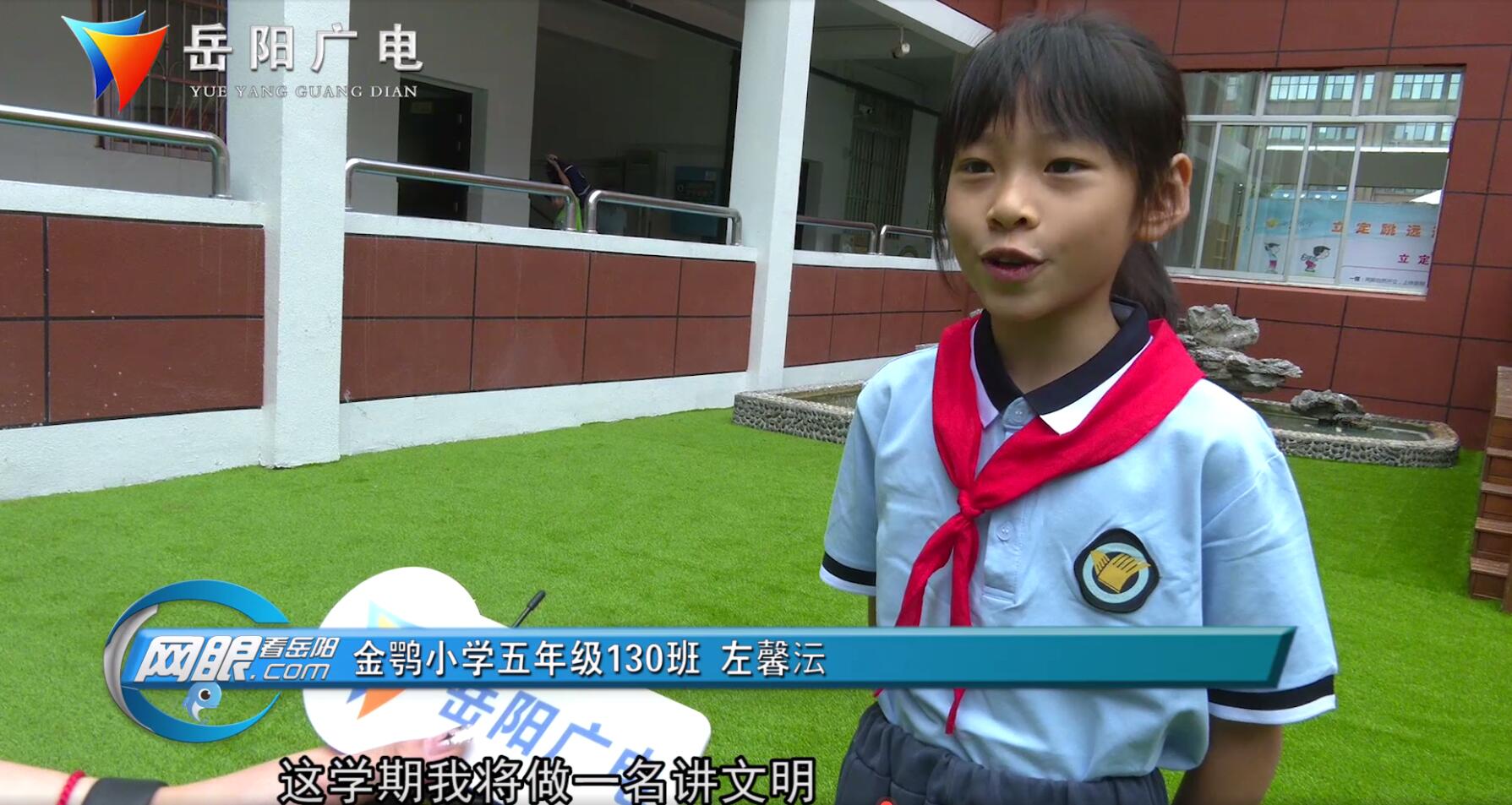 金鹗小学五年级130班 左馨沄:这学期我将做一名讲文明、守纪律的好学生,我会和同学们一起加油。