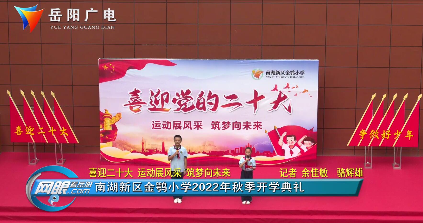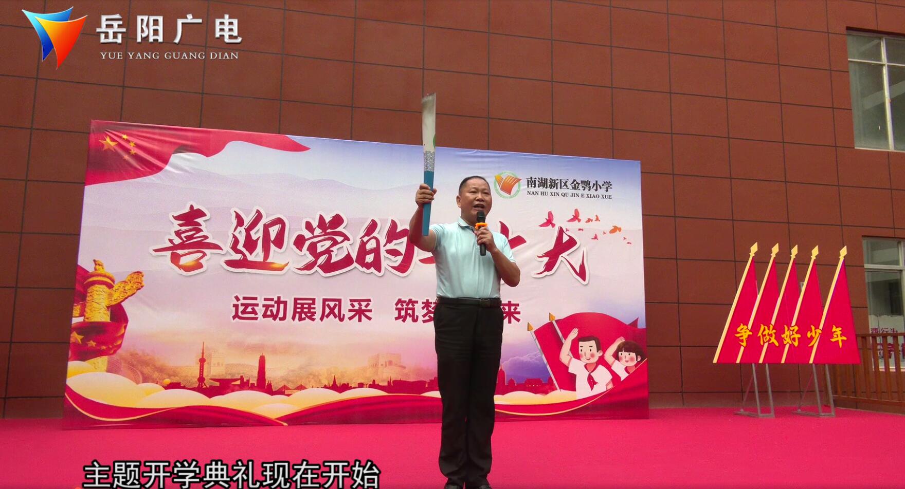 南湖新区金鹗小学 党支部书记 刘平和:我宣布,“喜迎二十大 运动展风采 筑梦向未来”主题开学典礼现在开始。