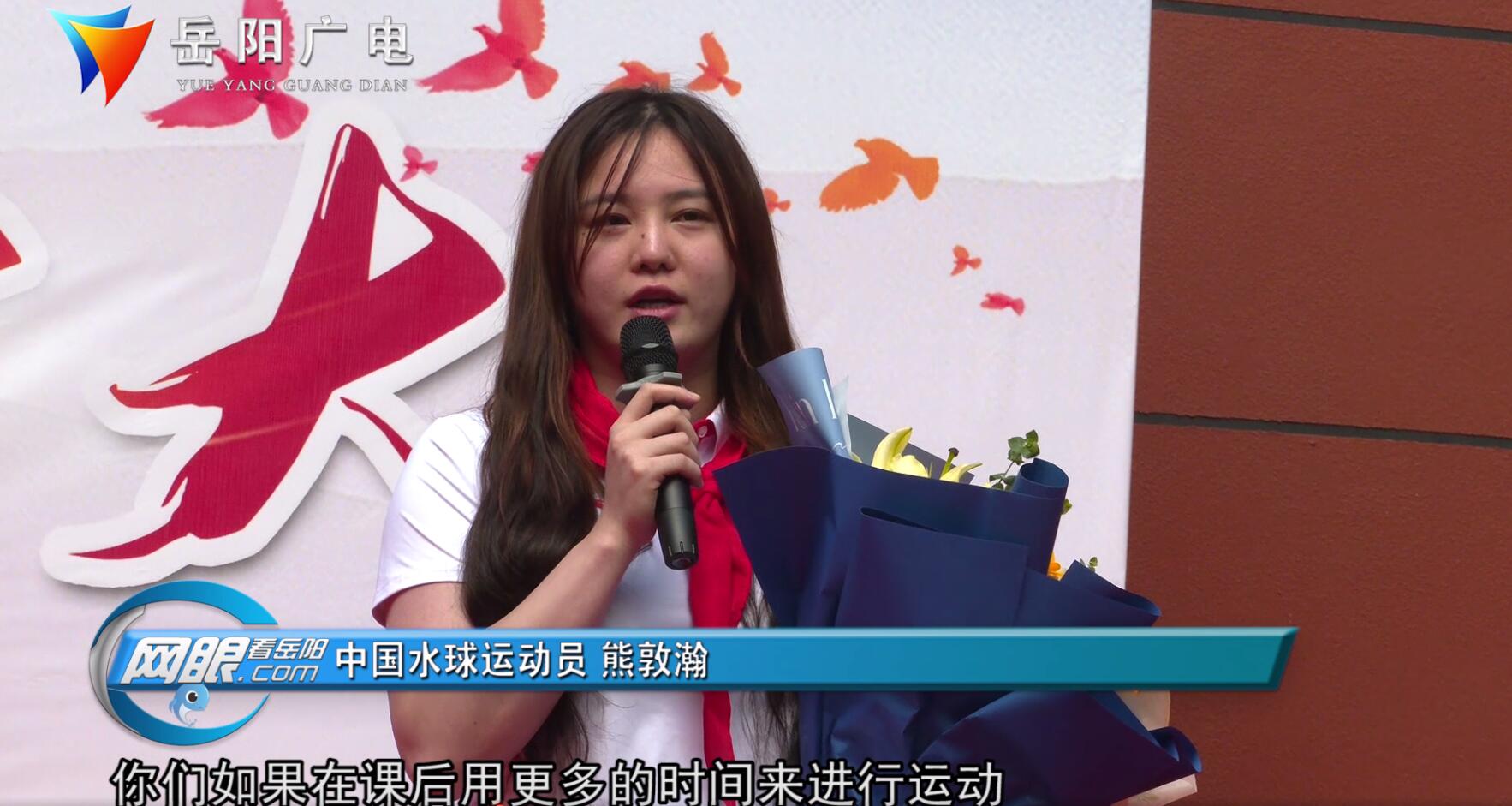 中国水球运动员 熊敦瀚:各位学生们,你们除开自己上学的时间,你们如果在课后用更多的时间来进行运动,相信你们经过长一时间段的享受和努力,你们最终会获得一个非常强壮的身体来报效祖国。
