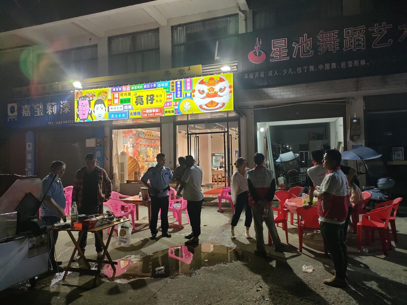 除农家夜话活动外,麻塘办事处还组织派出所民警、党员志愿者50余人组成平安志愿夜间巡逻队,对域内公共场所、夜宵店、村组主干道等重要区域开展治安巡逻、隐患排查。一道道穿梭在夜幕下的红色身影,点亮了居民安全“平安灯”。
