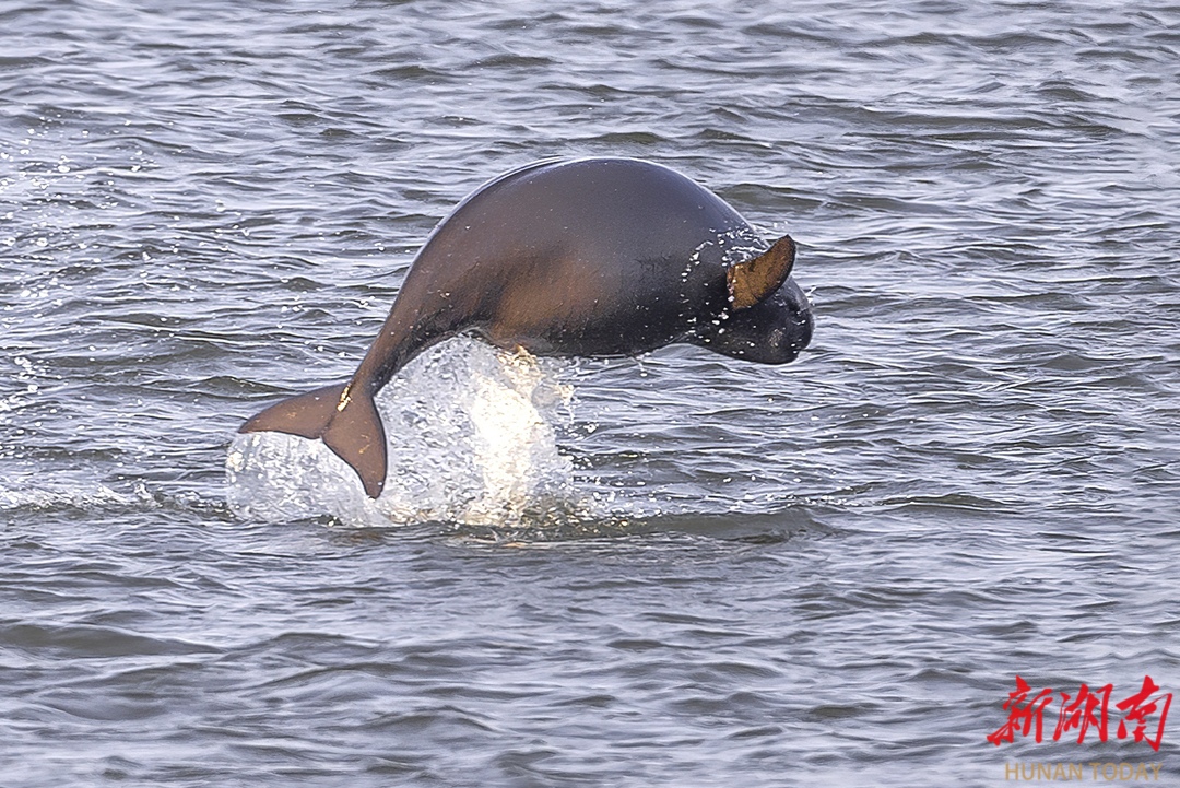 长江岳阳市君山华龙码头段,江豚在水中嬉戏。石述威 摄