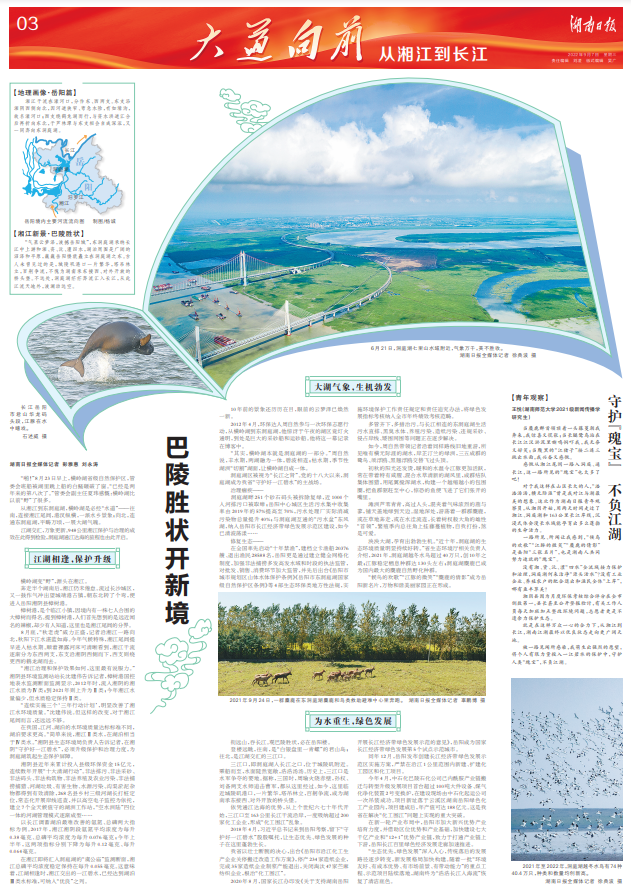 洞庭湖区被视为“长江之肾”。党的十八大以来,洞庭湖成为我省“守护好一江碧水”的主战场。