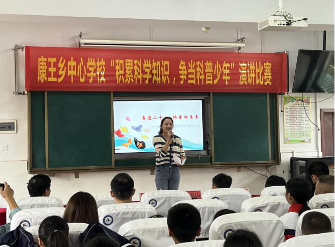 本次比赛由康王中心小学承办,来自长岭明德小学、新合小学、龙凤小学、乌江小学的校长、主任以及50位学生观看了比赛。9位来自康王乡各个学校的选手准备充分,他们身着校服、精神饱满、声情并茂,用充沛的感情鼓励更多的同学积极投身科技创新实践,抒发学科学、爱科学、用科学的情怀。整场比赛,选手演讲内容感情真挚,情感丰富。从生活实际和书籍资料出发,表达了同学们对科学知识的热爱赞美之情。选手们富有感染力的精彩表现打动了评委和在场观众,不时博得阵阵掌声,展现了新时代好少年们热爱科学知识的良好品质。