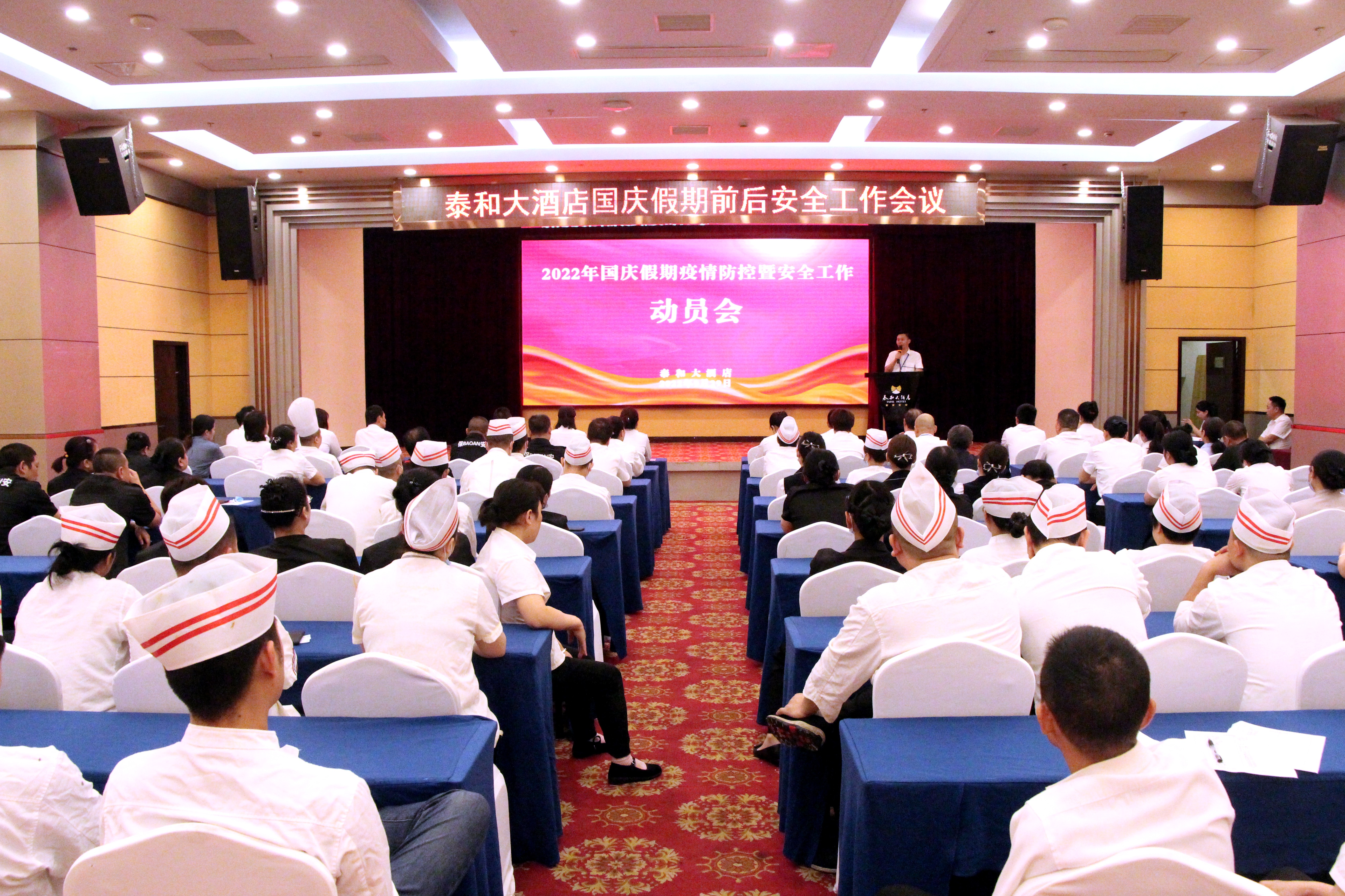 岳阳广电全媒体讯 (特约记者 朱开见 吴德胜 喻昱)在全国人民喜迎二十大,欢度国庆之际,金秋的岳阳一片喜气景象。9月29日,泰和大酒店员工欢聚一堂,隆重举行省运会接待工作总结表彰暨国庆长假安全工作动员大会。