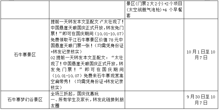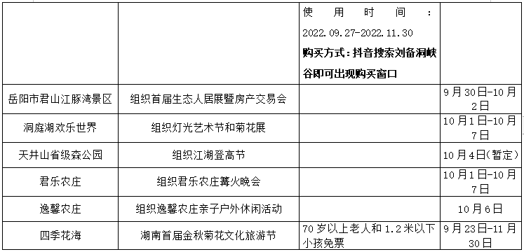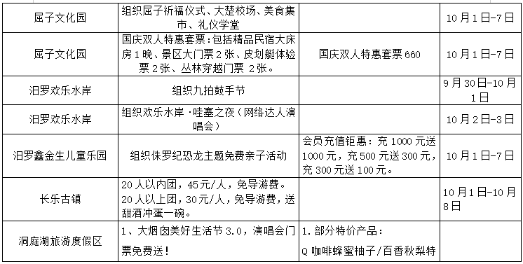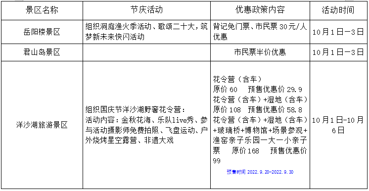 岳阳市2022年国庆期间景区优惠情况表