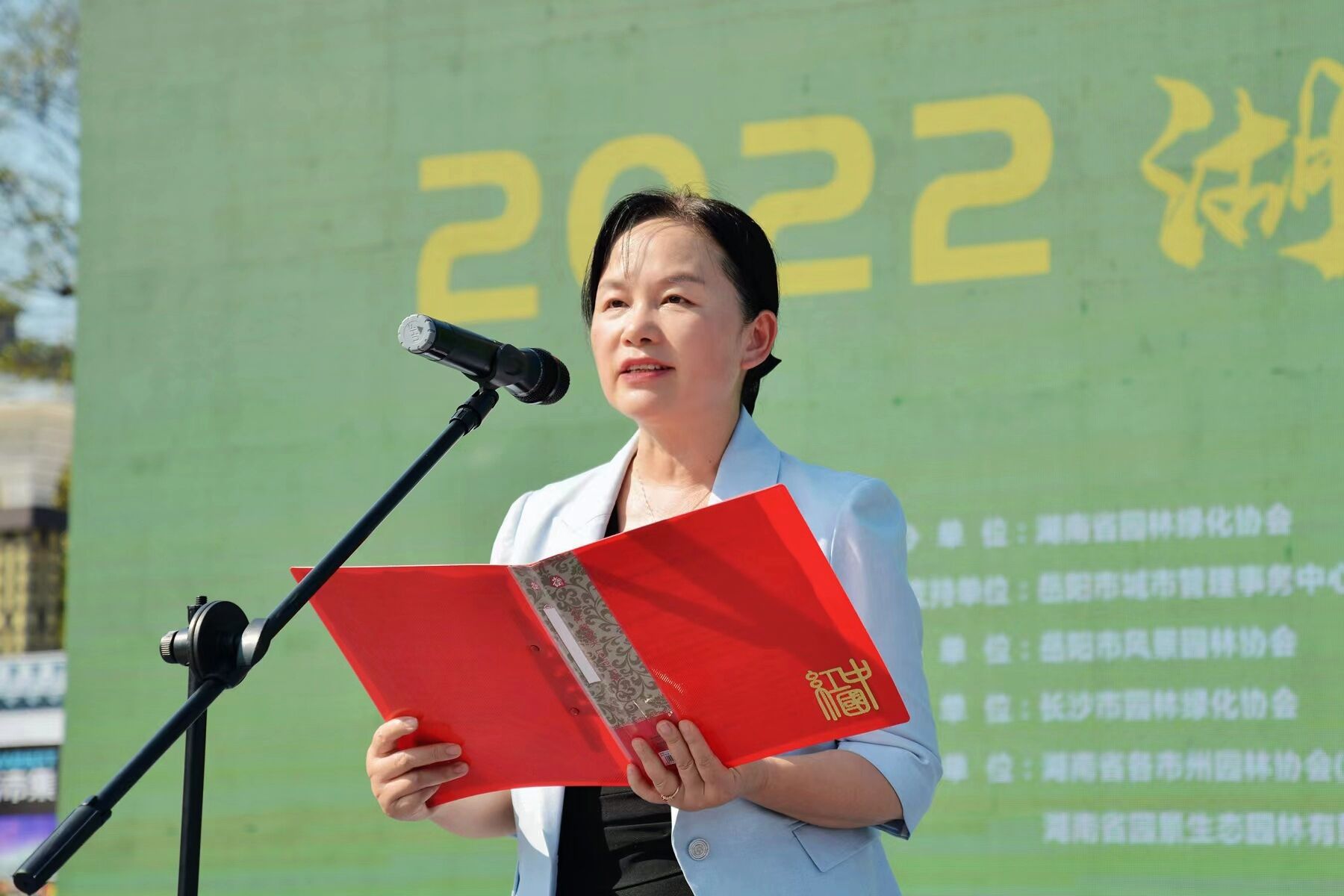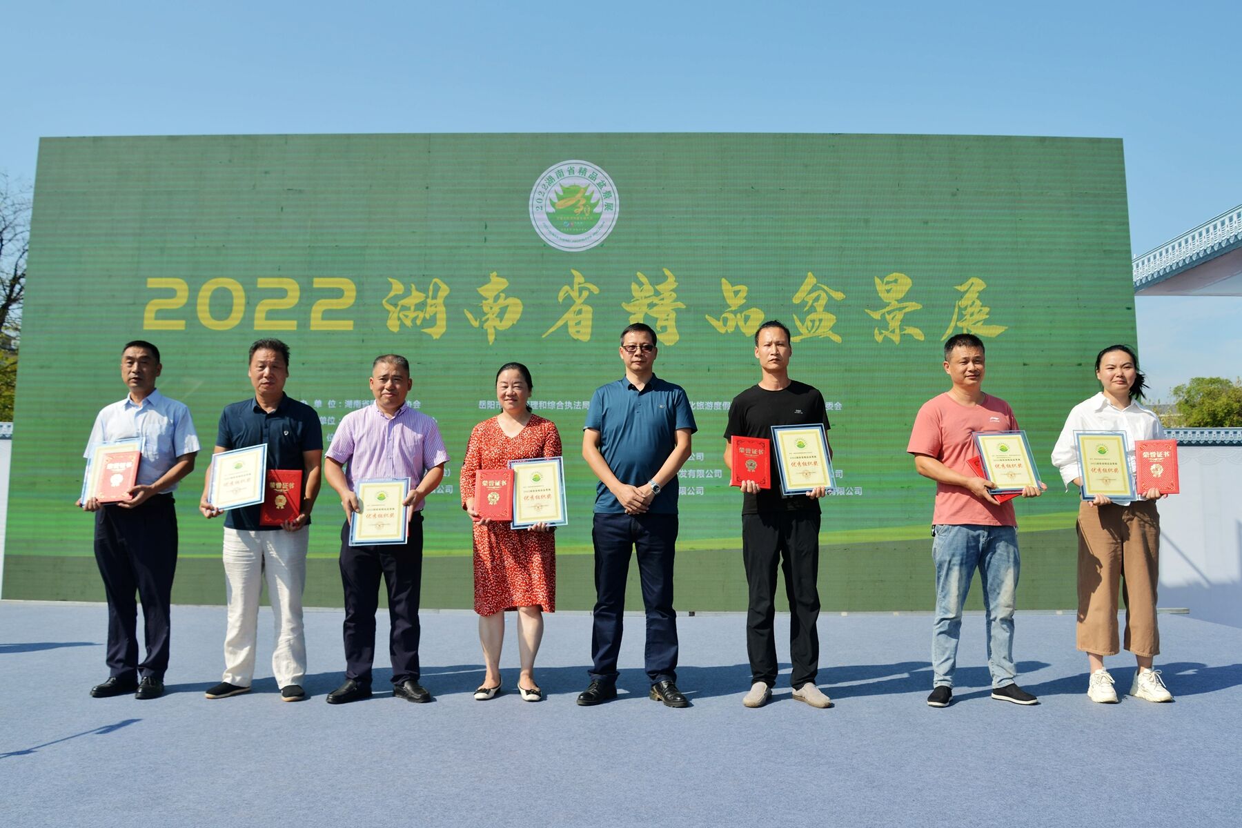 岳阳广电全媒体讯(记者 欧阳琳 谢少杰 )国庆华诞,叠翠流金。10月1日上午,2022年度湖南省精品盆景展在南湖新区圣安寺广场盛大开幕。副市长李美云为部分获奖选手颁奖并宣布开幕,南湖新区党工委书记王亚丹、省住建厅城市建设处副处长尉蔚分别致辞,南湖新区党工委副书记、管委会主任潘宏军,区领导田共兵、苏冬等出席仪式。