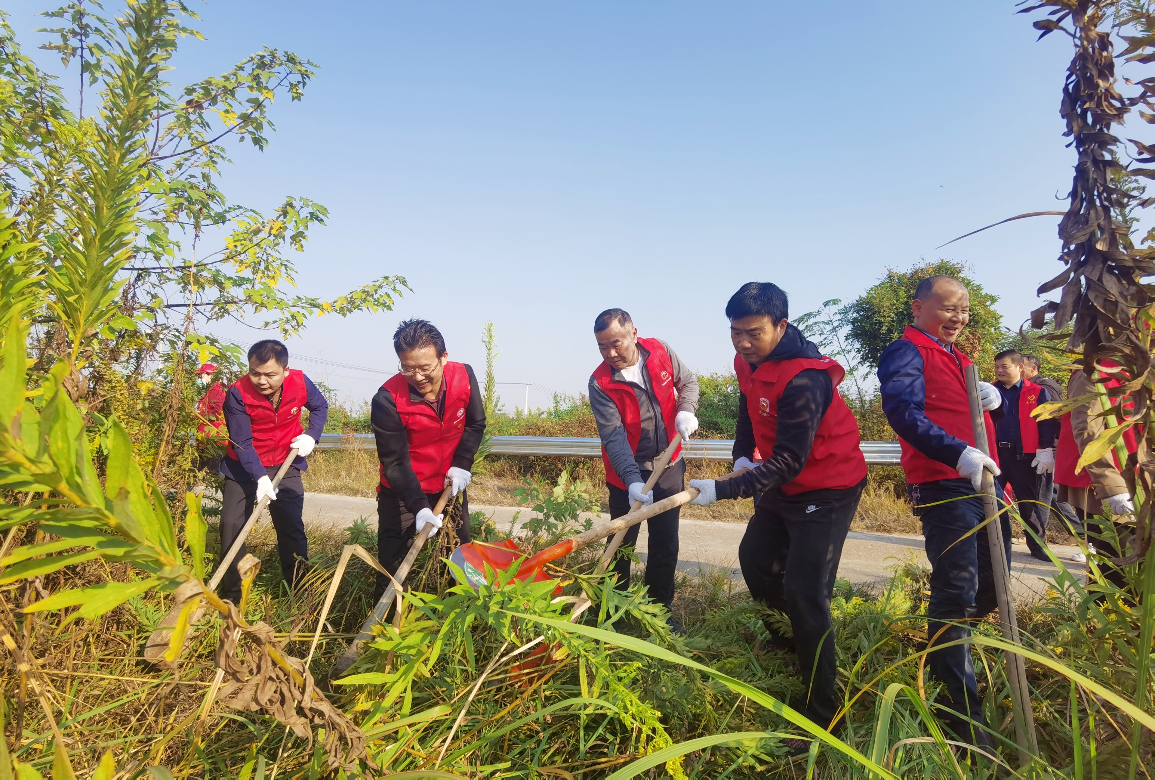 机关干部志愿者铲除路边“一枝黄花”
