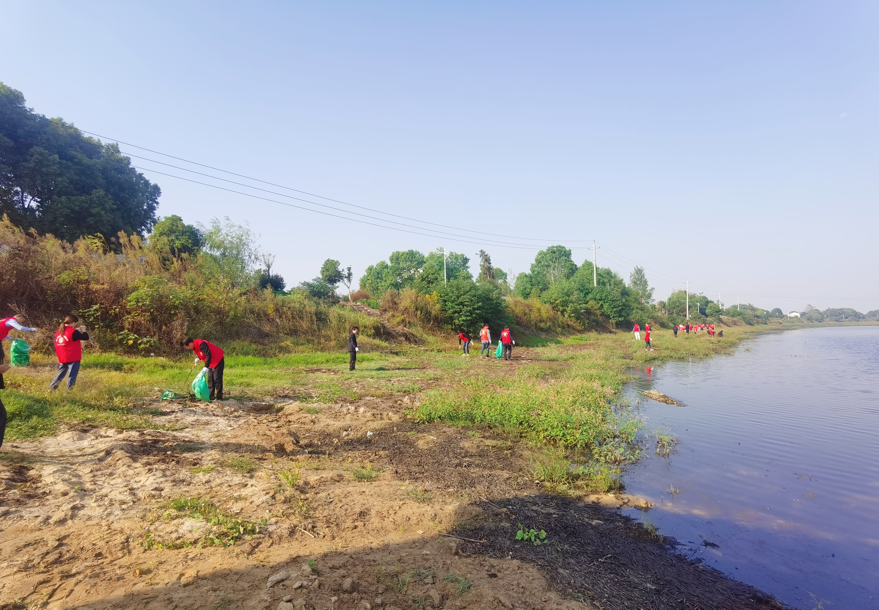 志愿者在清洁江湖河畔