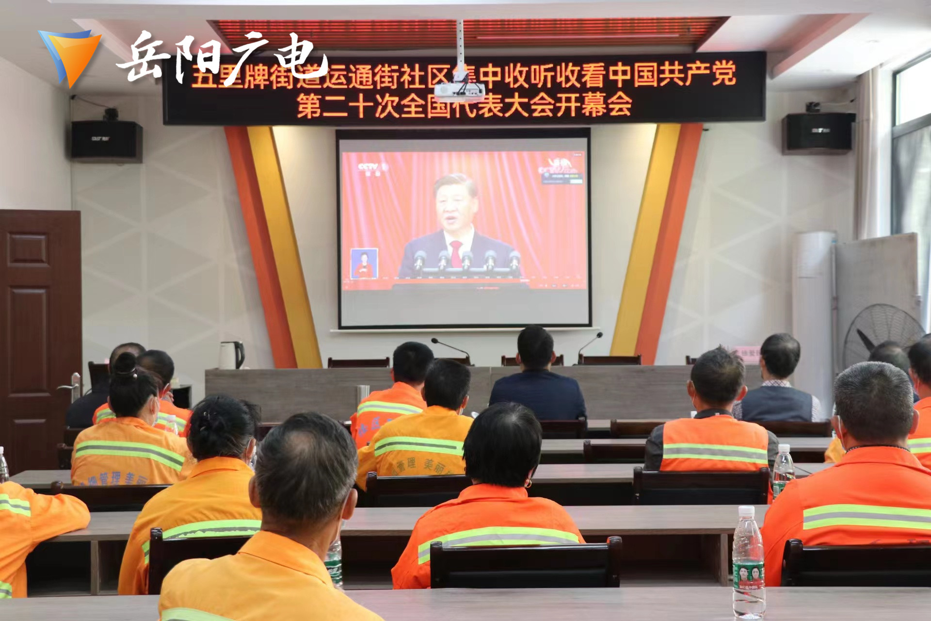 今天上午,岳阳市岳阳楼区五里牌街道组织40多名环卫工人,采取大集中、小分散的形式分别在运通街社区工会户外劳动者爱心驿站和社区新时代文明实践站活动室,集中收看党的二十大开幕会,认真聆听习近平同志向大会作的报告。