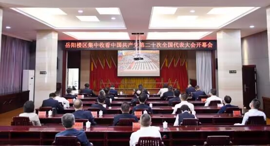 岳阳广电全媒体讯(岳阳楼区融媒体中心 胡小康 戚壮波)10月16日,举世瞩目的中国共产党第二十次全国代表大会在北京人民大会堂开幕。岳阳楼区委书记曾平原,区委副书记、区长白再兴等区级领导在区委一楼会议室集中收看开幕盛况。收看现场气氛庄严肃静,大家聚精会神、专心致志地聆听习近平代表第十九届中央委员会向大会所作的报告,并认真记录。
