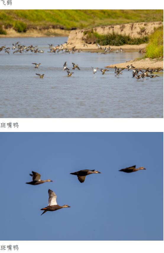 除发现飞鹤和小天鹅外,近期以来在屈原管理区凤凰乡境内汨罗江尾闾,还发现和拍摄到大量的斑嘴鸭、反嘴鹬和多种白鹭。