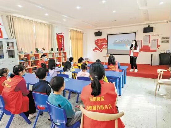 除此之外,岳阳楼区坚持改革创新,推广实施“梦想儿童之家·公益小课堂”项目,创新开展了内容形态多姿多彩的儿童活动,开启了志愿服务项目化建设的新篇章。该项目是利用基层既有的文化活动中心、青少年之家、市(村)民学校、图书阅览室等场地,建设“儿童之家”,开设“公益小课堂”。面向小学阶段留守儿童、困境儿童和双职工家庭子女,组织志愿者进站服务,在学生放学后、周末、寒暑假等时间段,开设思想引领、课业辅导、心理疏导等公益课程,关爱留守儿童和困境儿童,助力青少年健康成长。截至目前,“梦想儿童之家·公益小课堂”累计开展活动近2700场次,服务儿童近4万人次,志愿者参与近15000人次。