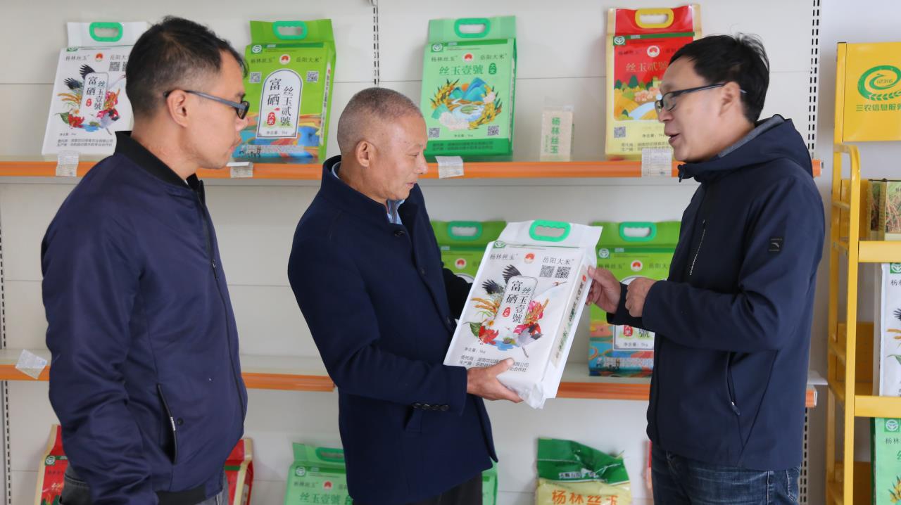 杨林街镇,一个看似普普通通的丘陵乡镇,却有着深厚的文化底蕴,这里走出了方澄、方氲、方辛亚、方纯等四位明代尚书。该镇地处幕阜山脉北端,土壤富含硒、锌等人体必须的微量元素,水稻种植历史悠久,其大米粒型饱满、晶莹玉润,米饭浓香,口感糯软,在明王朝被定为军粮、贡粮的供应基地。作为明朝尚书的子孙,尚书村村民方幼雄在这块土地上创办了湖南世纪绿食农业有限公司,并向岳阳市粮食行业协会发起创建了“岳阳大米”区域公用品牌。谈起“岳阳大米”,方幼雄打开了话匣子。岳阳种植水稻的历史可追溯到新石器时代的早期。据君山区坟山堡、汨罗市附山园、华容县车轱山发掘的遗址中遗存大量的碳化稻考证,公元前8000年先民已将野生稻育成栽培的水稻 ,表明岳阳是水稻栽培的发源地之一。“湖广熟,天下足”,自古以来,岳阳就是水稻主产区。但是岳阳的水稻品牌优势不明显,方幼雄意识到岳阳大米生产企业,需要抱团发力,打造品牌,于是他在2019年完成了“岳阳大米”地理商标的注册。方幼雄,这位有着忧乐情怀的农民企业家并不是只想将“岳阳大米”地理商标据为己有,他以为乡村振兴出一份力为己任,主动让出“岳阳大米”地理商标作为岳阳市大米行业的区域公用品牌。他说,一人富了,还要带动一方富。“岳阳大米”不仅仅是属于他的,更是属于岳阳人民的。