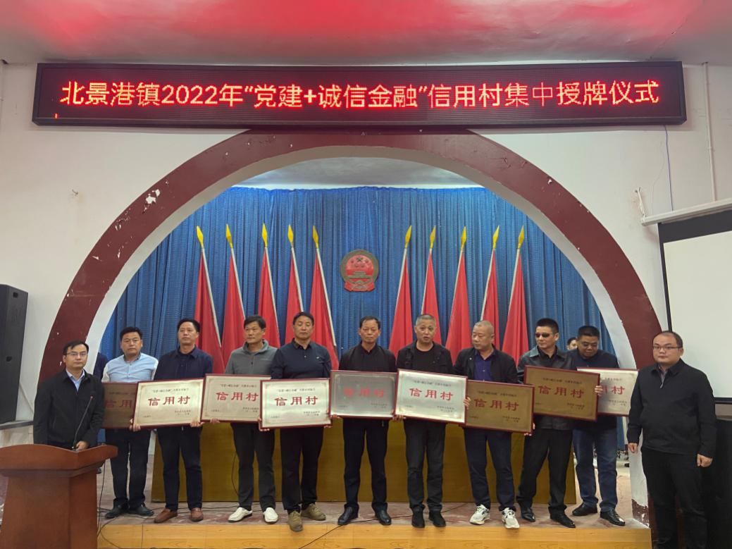 岳阳广电全媒体11月7日讯(记者/蔡群 通讯员/ 郭敏)为切实提升金融服务乡村振兴能力,扎实推进农村信用体系建设。近日,华容县北景港镇举办“党建+诚信金融”信用村集中授牌仪式,对联盟村、联华村、协和村等九个村(社区)进行了授牌。加上去年已经授牌的三个村,北景港镇已实现了信用村全镇覆盖。