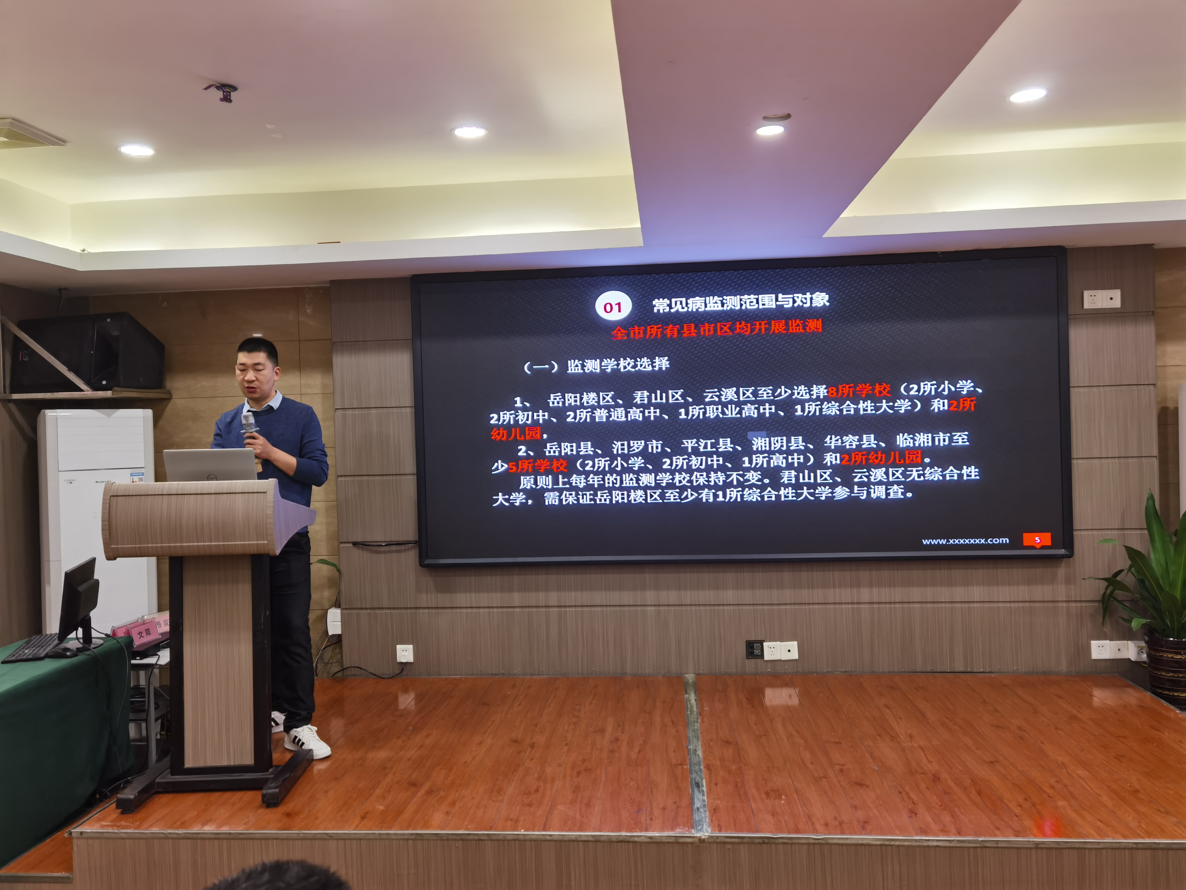 今天,岳阳市近视防控技术指导中心团队、各县市区疾控中心学校卫生科科室负责人和业务骨干、岳阳楼区学生常见病各监测学校的校医等40余人,在岳阳市疾控中心组织下,举办了2022年全市学生常见病和健康影响因素监测与干预工作培训班。