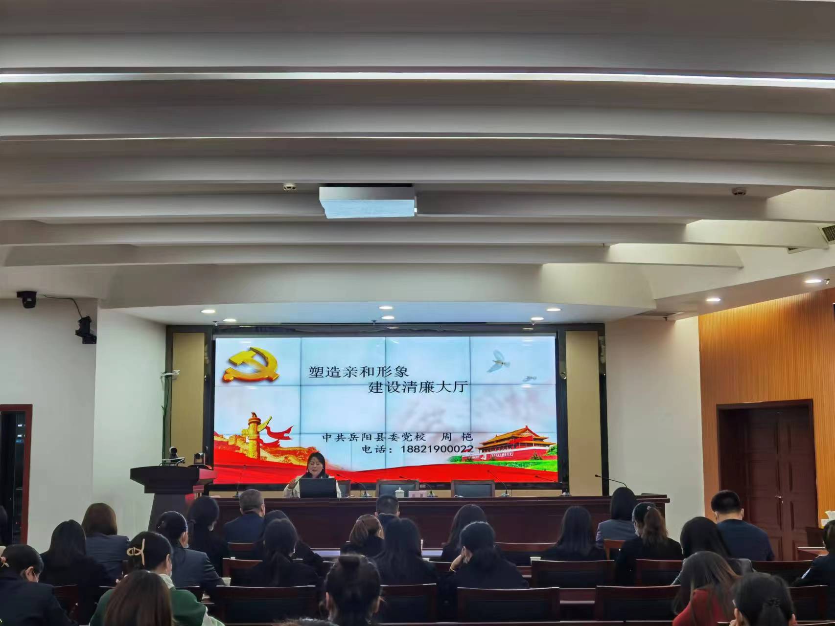 11月21日下午,岳阳县政务服务中心邀请县委党校周艳老师为中心党员干部讲授了一堂生动深刻的清廉大厅专题党课。中心全体党员干部、窗口工作人员参加学习。