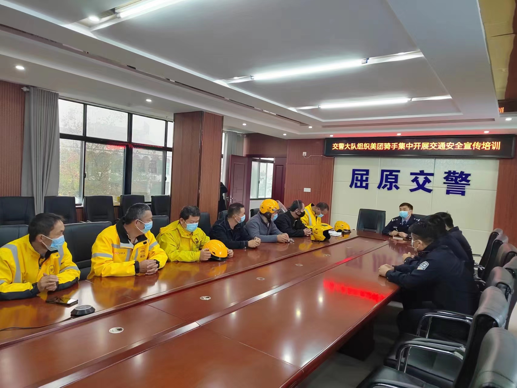 岳阳广电全媒体讯(记者 余佳敏 通讯员 李贝)为有效提高外卖配送骑手的交通安全意识,营造辖区良好的道路交通秩序,11月22日,屈原区交警大队组织美团外卖骑手开展交通安全宣传培训活动,宣传民警为外卖配送骑手讲解道路交通安全知识,倡导文明出行理念,呼吁广大外卖小哥和交警共同携手打造安全畅通的交通环境。
