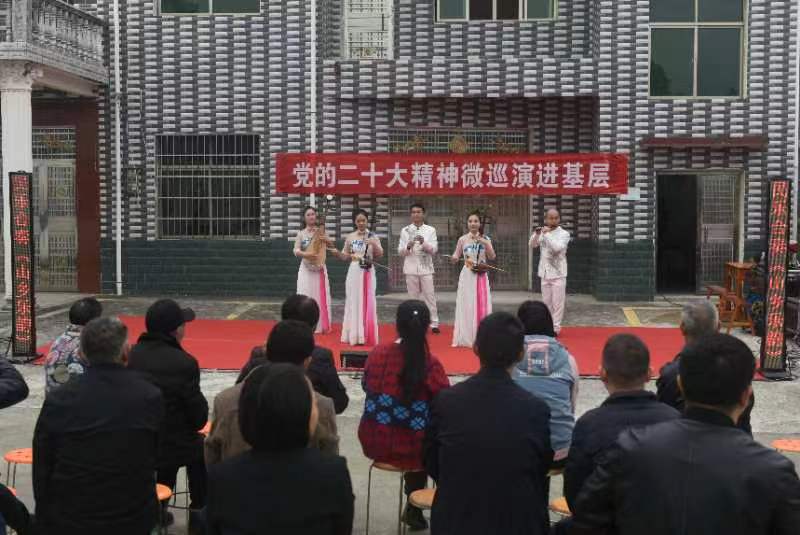 每场巡演,闻讯而来的村民们早早地围坐一起,在《山乡乐韵》里聆听乡村巨变,在《声声祝福你》中感受群众对祖国的赤子之心,文艺小分队精心准备的节目轮番上演,现场欢笑声、鼓掌声不绝于耳,通过小切口折射大变化、微巡演诠释大道理,切实推动党的二十大精神“声”入人心。