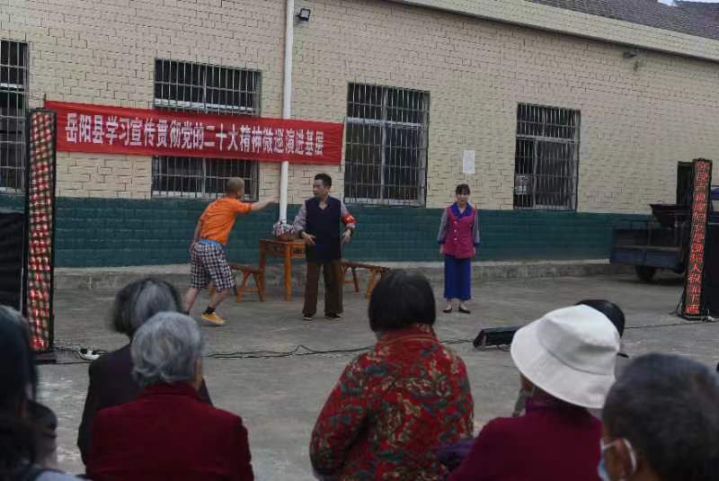在学习宣传贯彻党的二十大精神上,岳阳县始终坚持原原本本学、创新形式讲,把报告变成“家常方言”,将理论转换成“朴实道理”,针对不同群体、不同层面、不同行业,采取领导干部带头讲、党代表一线讲、宣讲队伍集中讲、青年群体上台讲、文艺节目生动讲、平台载体全面讲等方式,以屋场会、板凳会、庭院会等形式,吸引群众“坐得住、听得懂、用得上”,积极推动大会精神进企业、进农村、进机关、进校园、进社区、进网络,让“好声音”在巴陵大地传播。