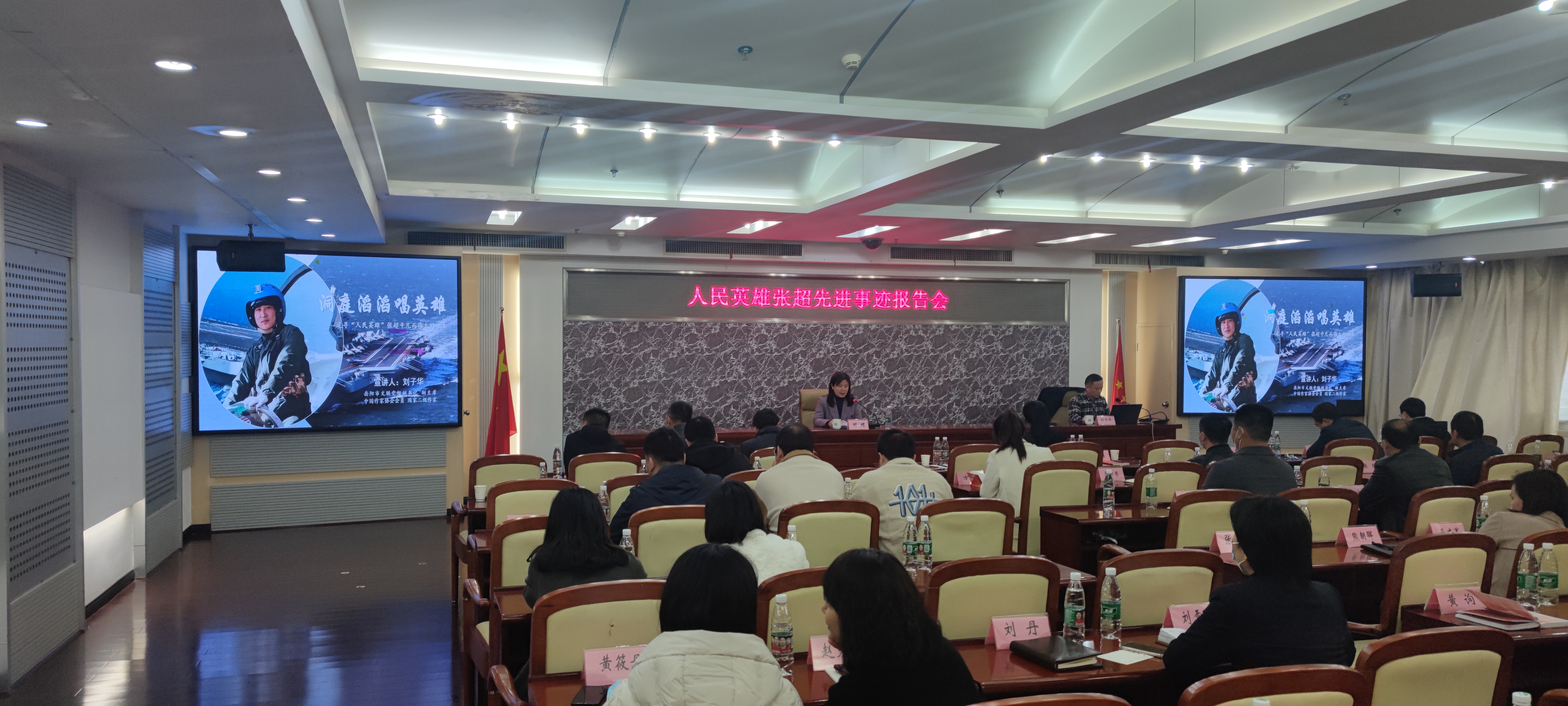 刘子华结合自己近3年来采访、写作长篇报告文学《逐梦海天—记人民英雄张超》的实际,用视频、音频、图片等方式精心制作了课件。宣讲中,刘子华用鲜活的故事,感人的细节,为大家还原了一个血肉丰满、可信可敬的人民英雄形象。