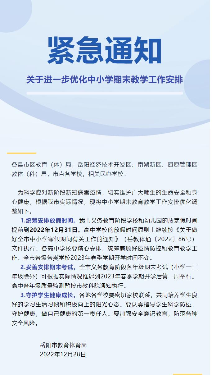 刚刚市教体局发布紧急通知事关中小学、幼儿园放假安排具体如下👇👇👇