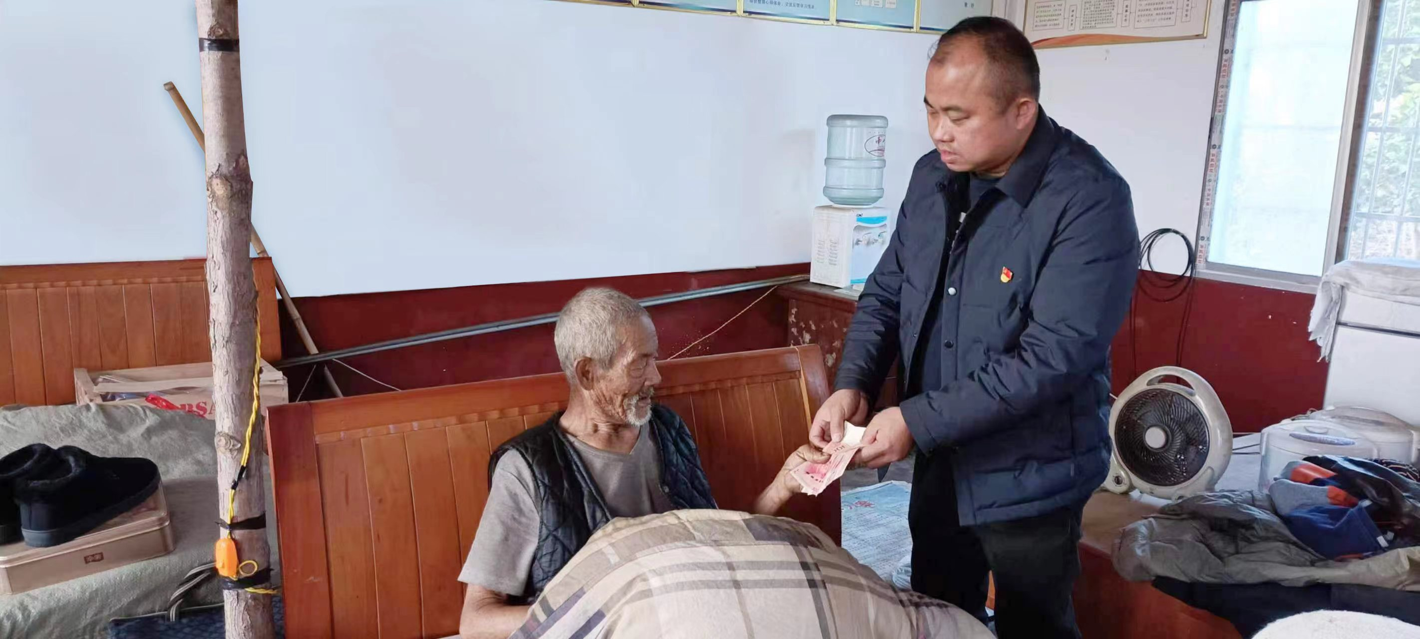 “李爹,马上要过年了,有年货才有年味哟。”北景港镇建丰村景二五组留守单元村民代表余映军急急忙忙来到留守老人李爹家中,送上了米、油等生活物资,还送来了新年红包,并对李爹打趣地说道:“女儿回来了长辈可是要给红包的呢。”一阵阵欢笑在李爹一人居住的房子里显得格外温暖。