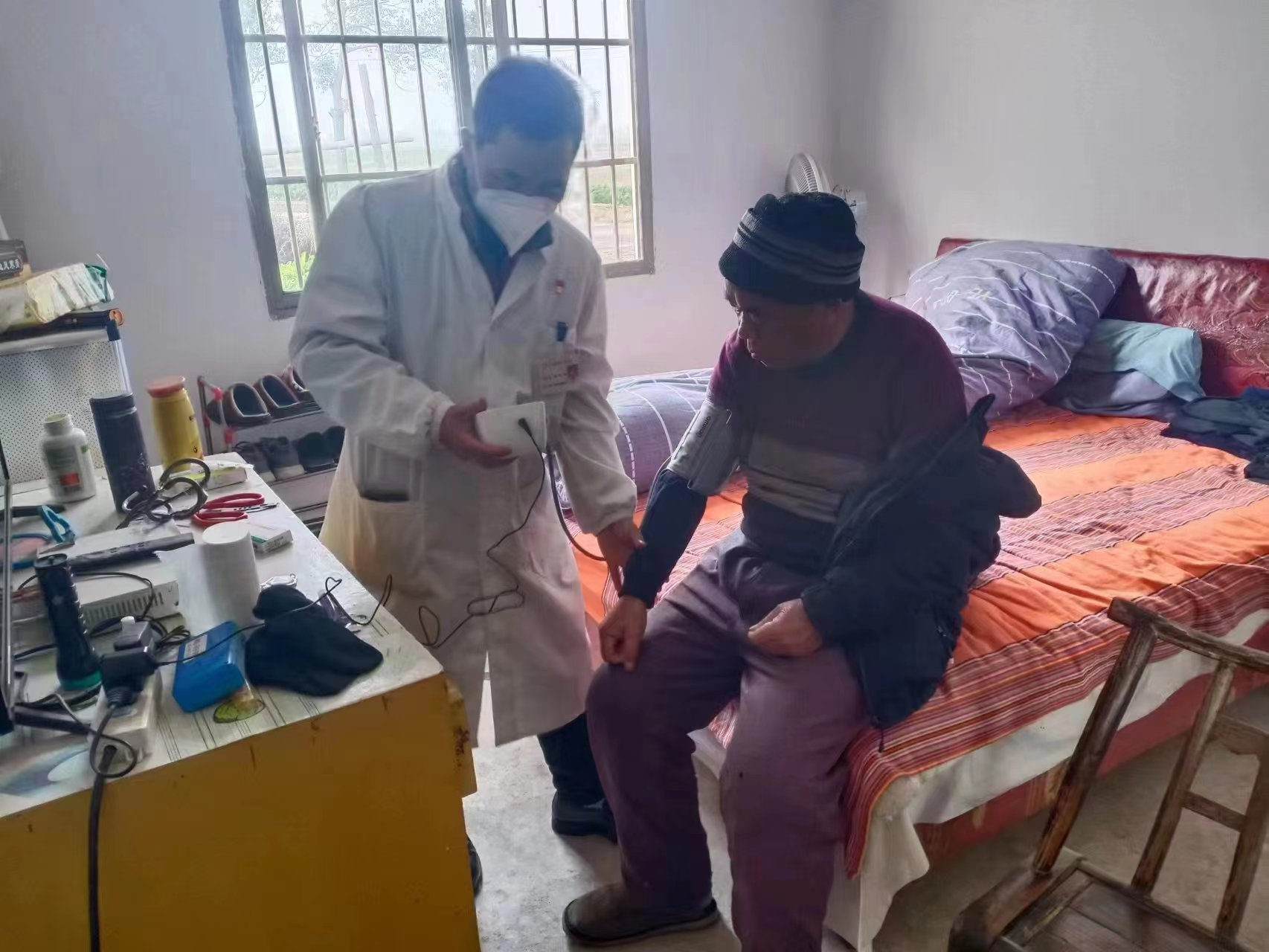 “晏爹,您目前一切平稳,平常要注意营养,补充能量才能增强抵抗力”。两天前,晏爹有轻微的咳嗽与不适,北景港镇沙金村党支部党员村医粟建辉第一时间送来了抗病毒等药物,他始终放心不下,一大早就来到老人家中看望。