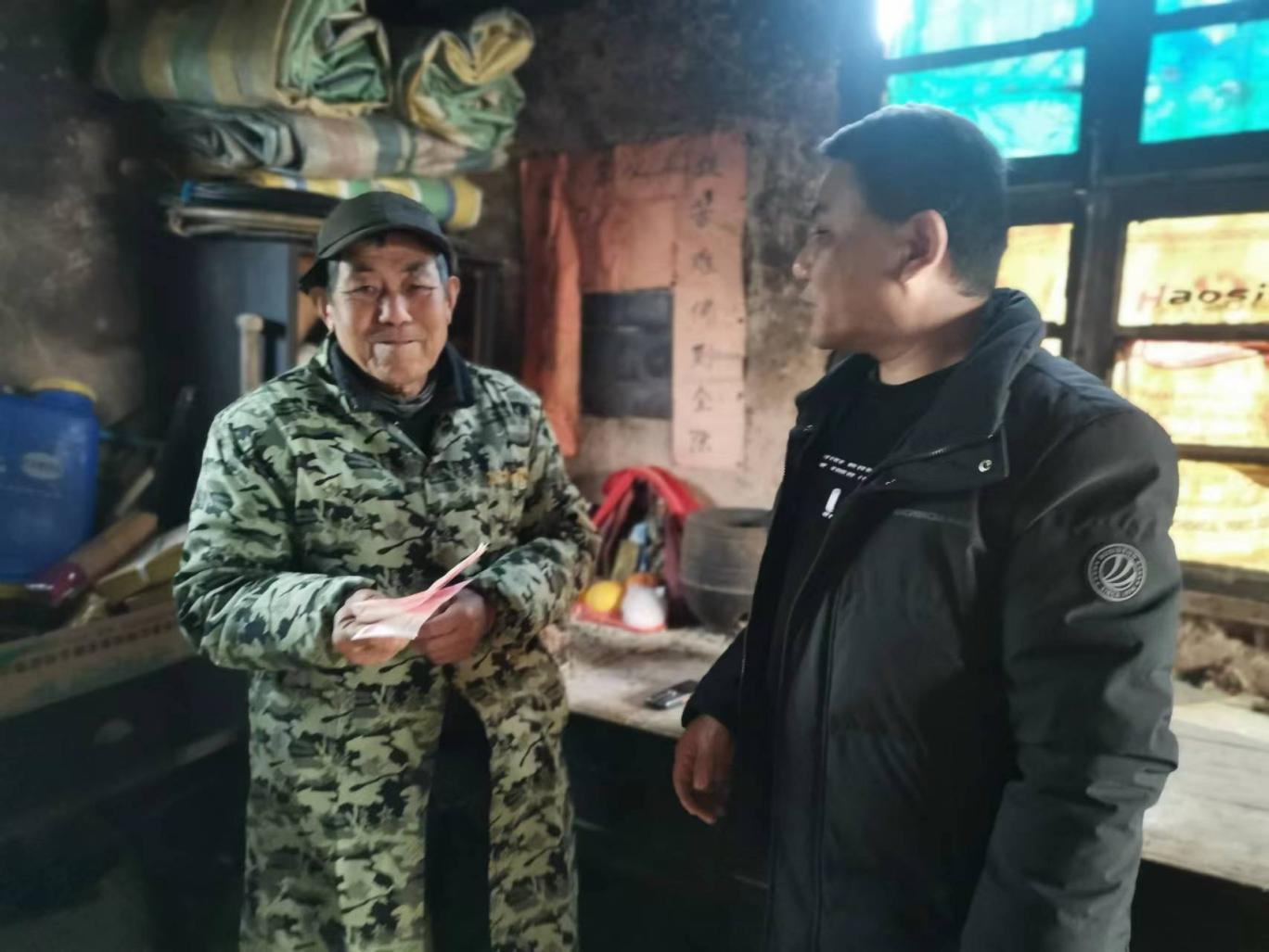 “李爹,快过年啦,我代表镇党委、政府过来跟您拜个早年!祝您新的一年身体健康、事事顺利。”东城村办点干部刘佳福为该村困难党员送上了新春慰问金。“蒋爹,您身体怎么样?好些了吗?”隆安村办点干部黄小兵在该村老党员家中问候。