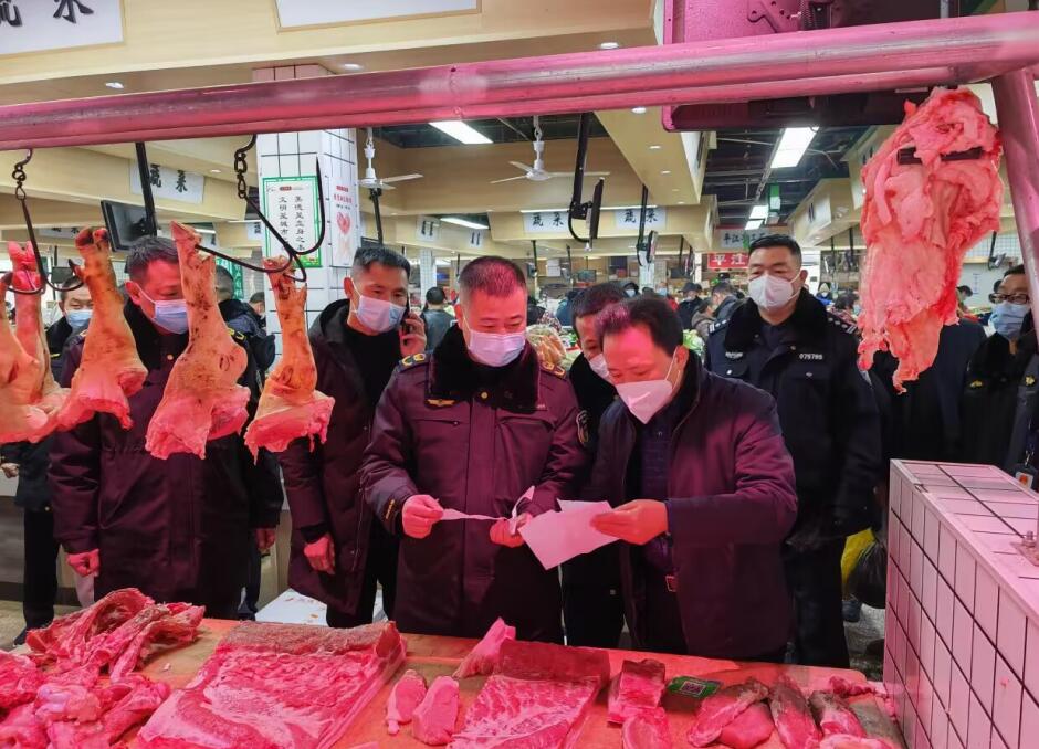 岳阳广电全媒体讯(通讯员 杨乐)春节临近,猪肉等肉类消费进入高峰期,为有效规范肉类市场,保障肉品质量安全,1月18日,岳阳楼区政府副区长李德君带领区农业农村局、区市场监督管理局、岳阳楼公安分局等有关部门执法人员,开展打击私屠滥宰和肉类市场专项整治行动。