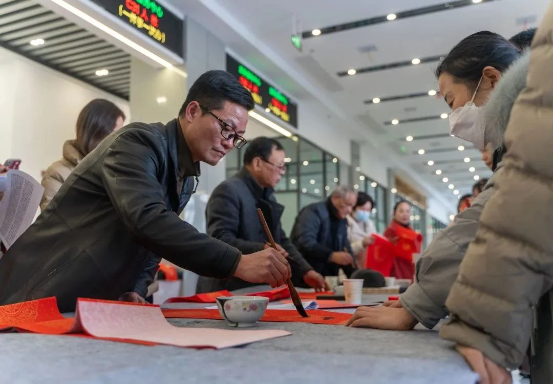 “正气山河壮,清风岁月新”,刚柔相济、墨色生动流畅的隶书落在大红的春联纸上,清新自然而韵味十足。1月18日下午,屈原管理区办事群众代表、文联代表、区书法家协会代表、各成员单位书法代表齐聚区政务服务中心现场挥毫,为办事群众撰写春联,送去美好祝福。