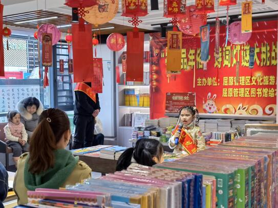 岳阳广电全媒体讯(通讯员 李健)在这一次的活动中,我感受到了不一样的年味,气氛是如此的浓厚,这是我之前从未体会过的。2月1日下午,春节期间,屈原管理区文化旅游广电局和屈原图书馆联合举办了“书中品年俗·诗词灯谜大挑战”读书会活动,热闹的气氛吸引了不少家长和小朋友走进书店,让满满的年味里增添了浓郁的书香气。学生张亦弛向记者讲述了参加活动的感受。
