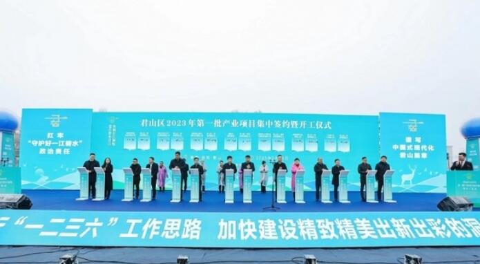 春风浩荡满目新,扬帆奋进正当时。2月23日,君山区举行2023年第一批产业项目集中签约暨开工仪式,32个项目集中签约、开工,总投资93.23亿元。市领导李建华、刘晓英、张赟,君山区主要负责人等共同见证。