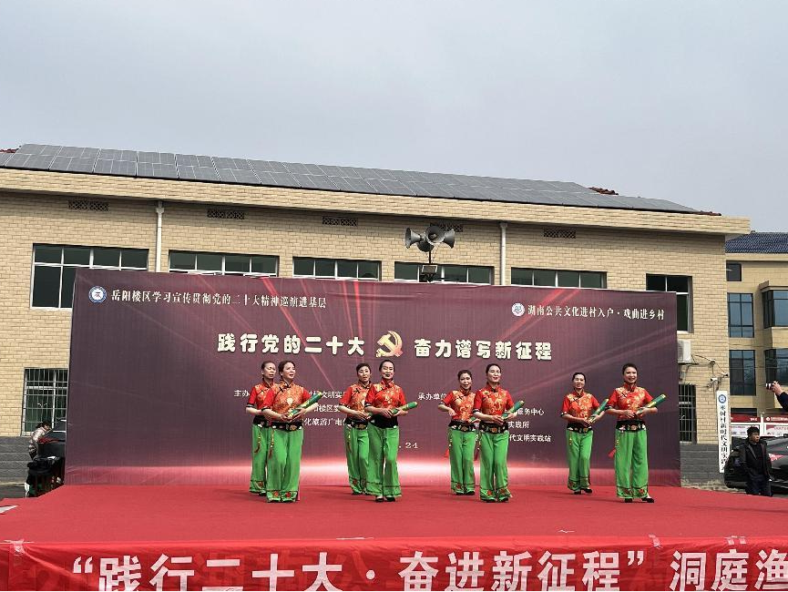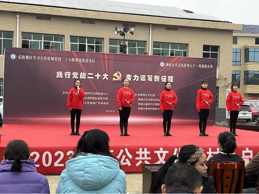 2月24日,由岳阳楼区新时代文明实践中心、区委宣传部、区文化旅游广电体育局主办,区文化馆、郭镇乡承办的学习宣传贯彻党的二十大精神微巡(展)进基层活动在岳阳楼郭镇乡枣树村举办,为该乡群众带来一场精彩的“文化盛宴”。