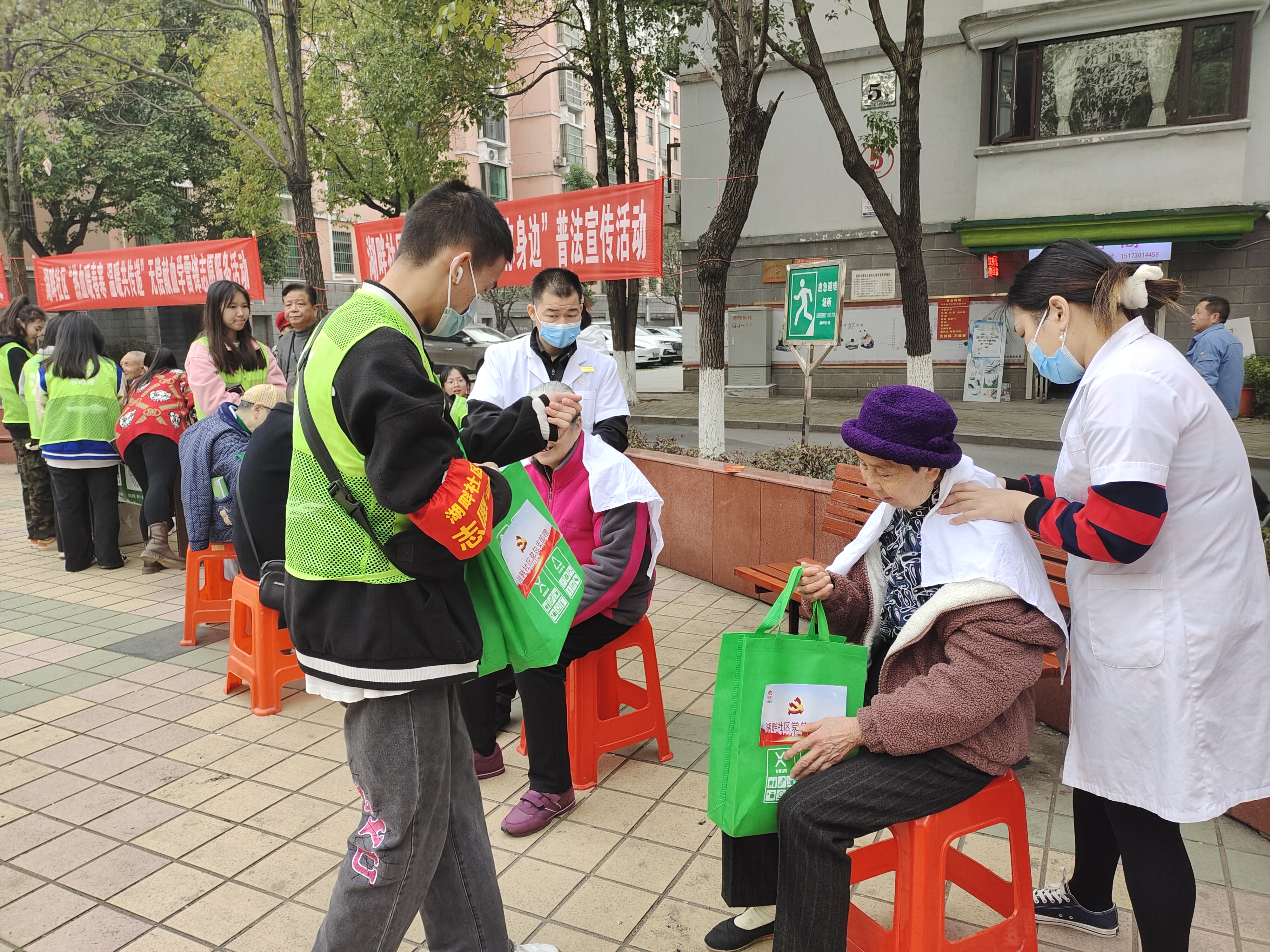 活动中,志愿者们热情地帮助湖畔社区的老人们量血压、剪指甲、捶背等,关注老人的身体健康。志愿者们对社区进行志愿清洁、垃圾分类,为社区居民营造干净卫生、舒适整洁的居住环境,发挥了践行初心、不负人民的雷锋精神。