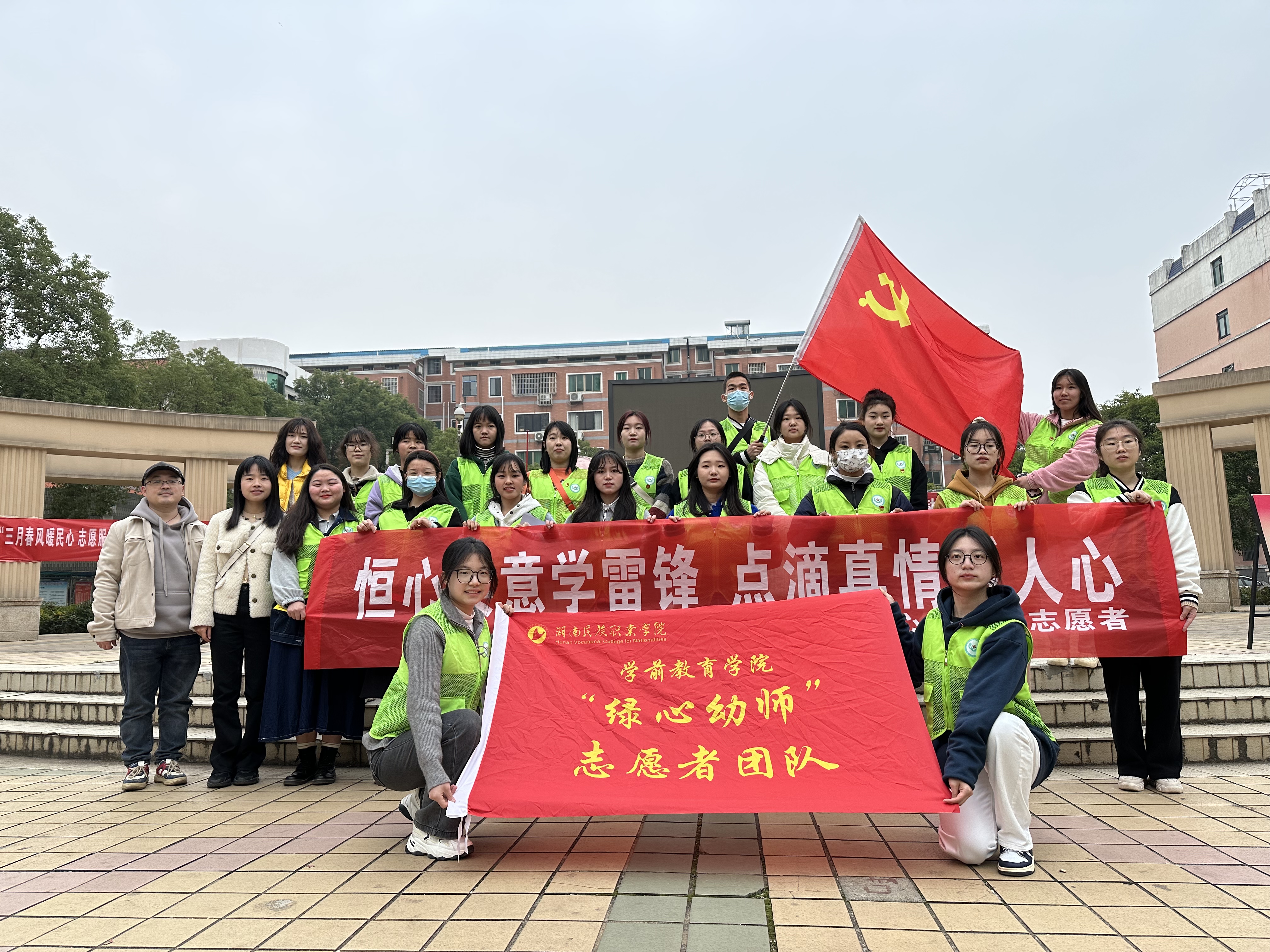 在第60个雷锋纪念日来临之际,为贯彻落实习近平总书记对深入开展学雷锋活动作出的重要指示精神。3月3日,湖南民族职业学院学前教育学院学生党支部书记郑旭鹏、指导老师刘芬芬、丁婷带领优秀党员和“绿心幼师”志愿者团队的志愿者们联合湖畔社区党总支部、湖畔社区居民委员会一同在湖畔社区,开展了“恒心实意学雷锋,点滴真情暖人心”志愿服务活动。