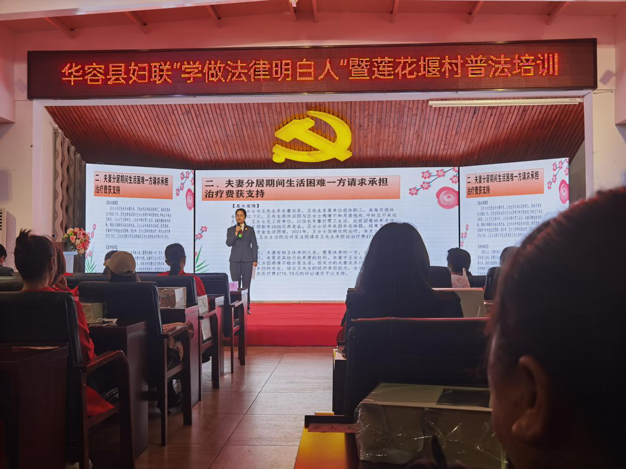 县人民法院普法员邓琴以《关爱女性,与法同行》为主题,通过法律理论知识与实际案例相结合的方式,深入浅出地讲解实施《中华人民共和国妇女权益保障法》的重要意义,并结合法院审理的关于涉及当前妇女权益保护中较为突出、广受关注的家庭暴力、婚内出轨、夫妻抚养、离婚财产分割及损害赔偿等重点、热点问题进行分析。