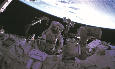 站在机械臂上,视角最好的时候,航天员可以看到空间站全貌。在蓝白相间的地球背景下,“问天”“梦天”像是空间站张开的两翼,缓慢地绕着地球家园飞翔。头顶是浩瀚宇宙,脚底下是空间站和地球,静静地身处其间,再也没有一刻能比此时更令人自豪。