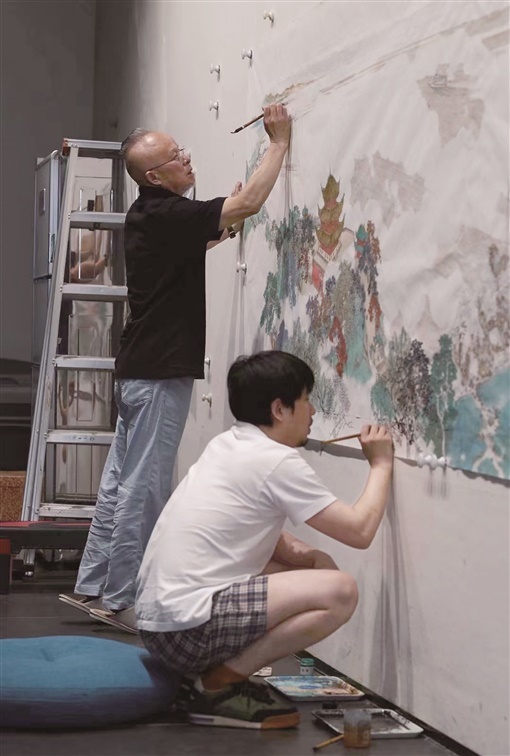 肖振中与李家池共同为湘绣《天下洞庭》创作画稿。受访者供图