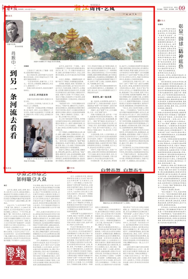 肖振中清楚地记得,童年的一个夏日,他拿着学校发的铅笔和图画本,一路小跑到沱江对岸的山坡,准备画城楼。刚坐下,一条蛇“嗖”地就从身边穿过去了。那次写生没有成功,但他的艺术白纸上有了痕迹。而后,他学刻版画,画连环画,画街头广告画。放牛时把牛赶到山上,自己则在山下画画。画完一张,抬头看,牛正好吃到半山腰。