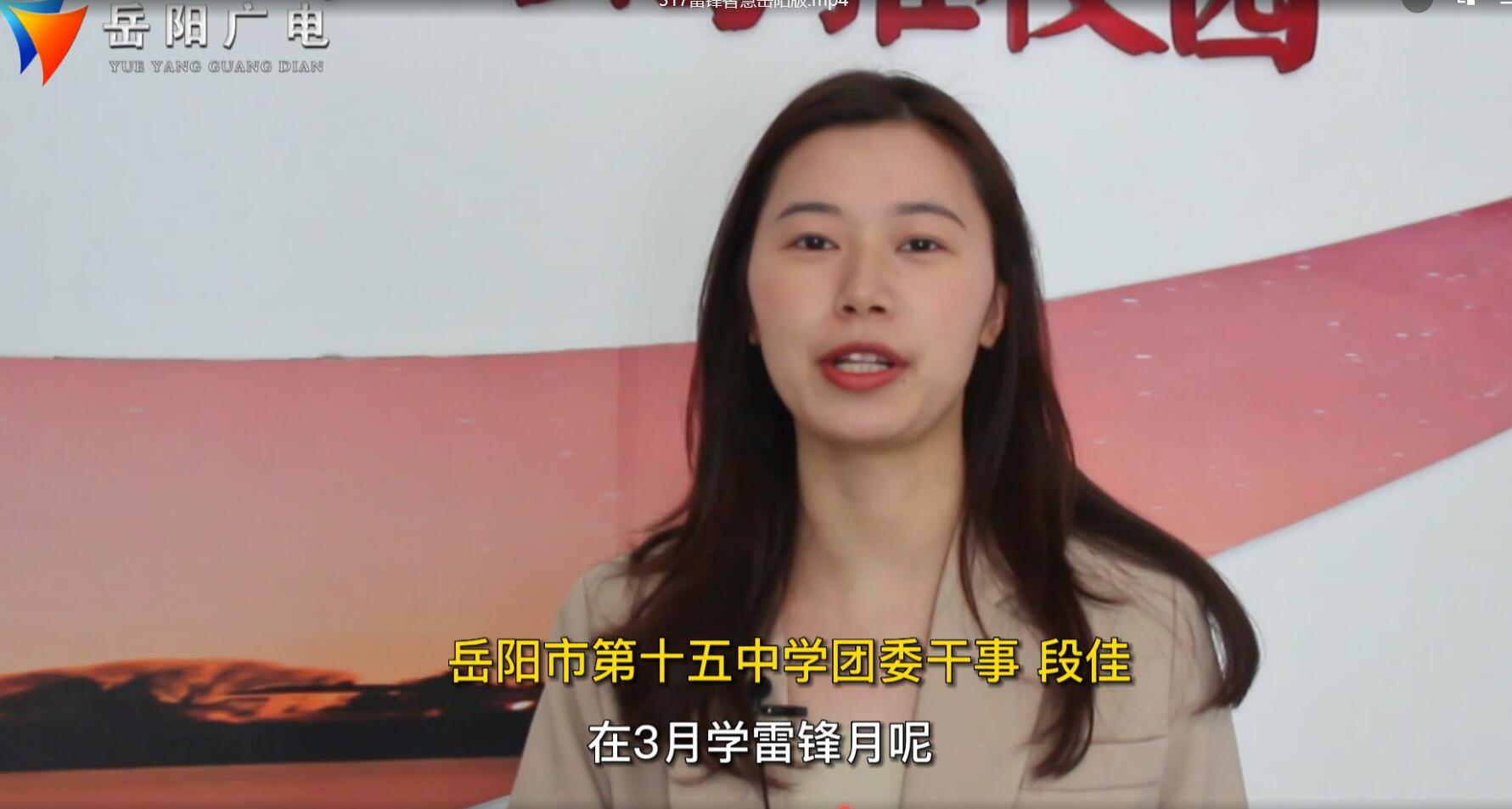 岳阳市第十五中学团委干事 段佳:在三月学雷锋月,我们十五中共开展系列活动,内化于心,外化于行,让学雷锋精神在青少年中薪火相传,代代相传。