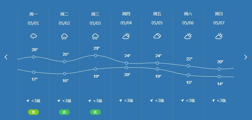 3.假期前段天气晴好,利于公众出行;假期后段,降水较多,注意防