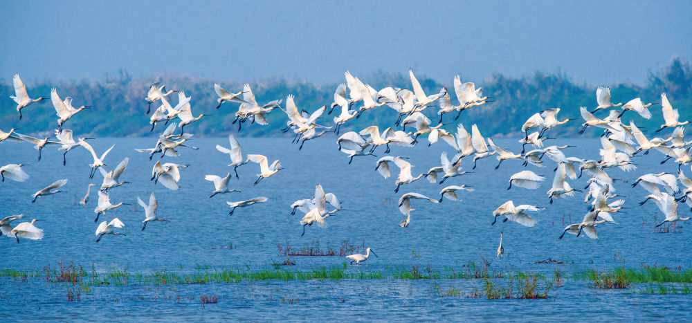 图为岳阳市横岭湖湿地保护区候鸟翔集的场景。郭雨滴 摄