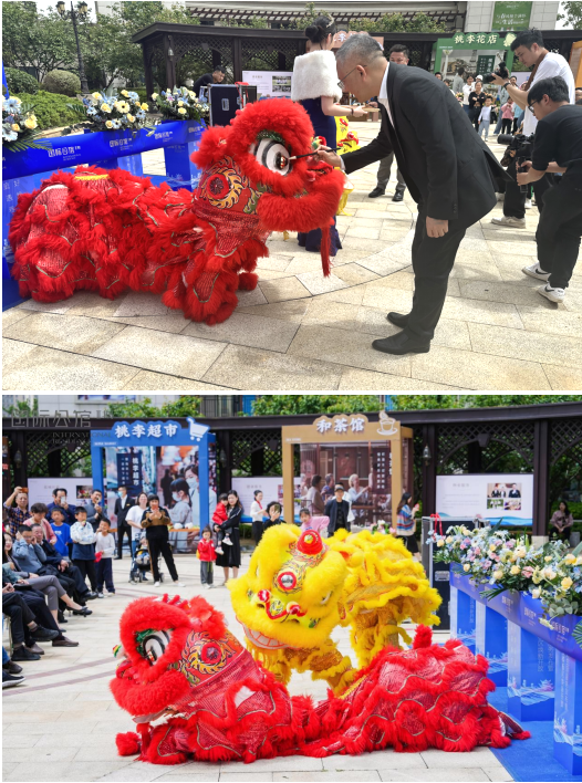 沉睡已久的雄狮,由项目总经理王斌荣先生与项目总经理助理赵杰先生共同点上“生命之笔”后“苏醒”,为众人献上吉祥喜庆的祥狮表演。