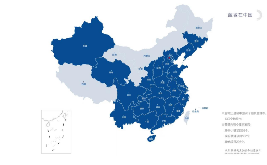 在蓝城看来,美丽建筑是安放生活的最佳容器;美好生活,才是人们孜孜以求的理想之境。 蓝城以“美好生活综合服务商”为企业愿景,秉承“仁慈普爱,真善至美”的企业核心价值观,履迹全国,迄今为止已成功进驻26个省及直辖市、139个地级市,营造569个美丽家园。