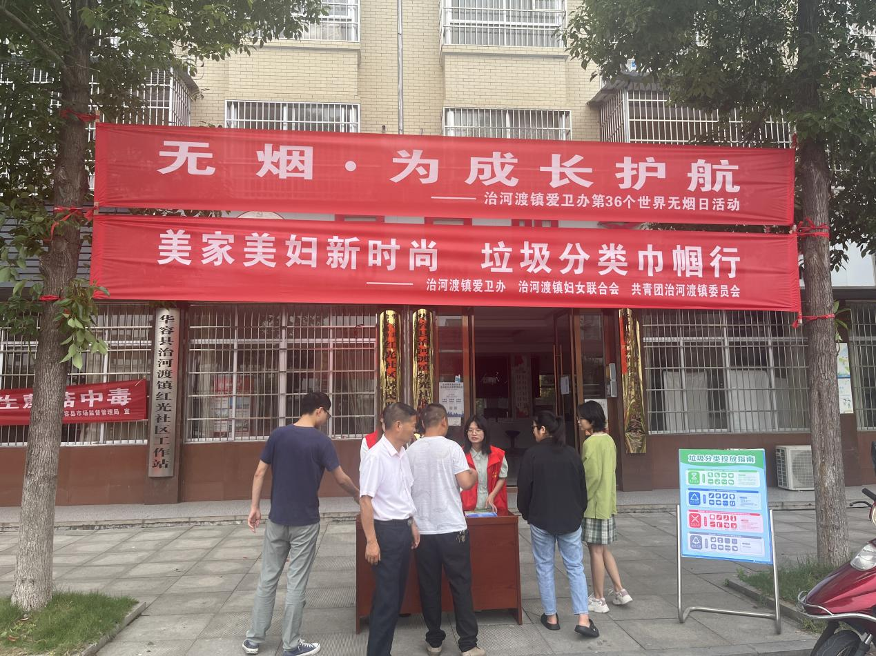 “吸烟对身体不好,要少抽烟哦。”治河渡镇青年志愿者深入沿街店铺开展宣传,主动上前给路边正在吸烟的居民提醒。在志愿者的劝导下,许多居民纷纷自觉掐灭手中的香烟。
