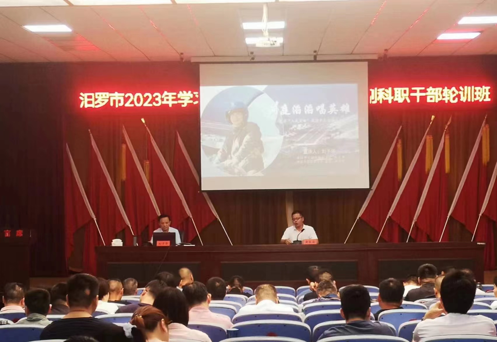 岳阳广电全媒体讯(通讯员 傅玉)传承是最好的缅怀,弘扬是最好的纪念。6月12日,汨罗市2023年科级干部培训班和副科级干部轮训班在市委党校举行,来自全市各行各业的169名学员参加。培训班特邀岳阳市文联党组副书记、副主席刘子华宣讲人民英雄张超先进事迹。