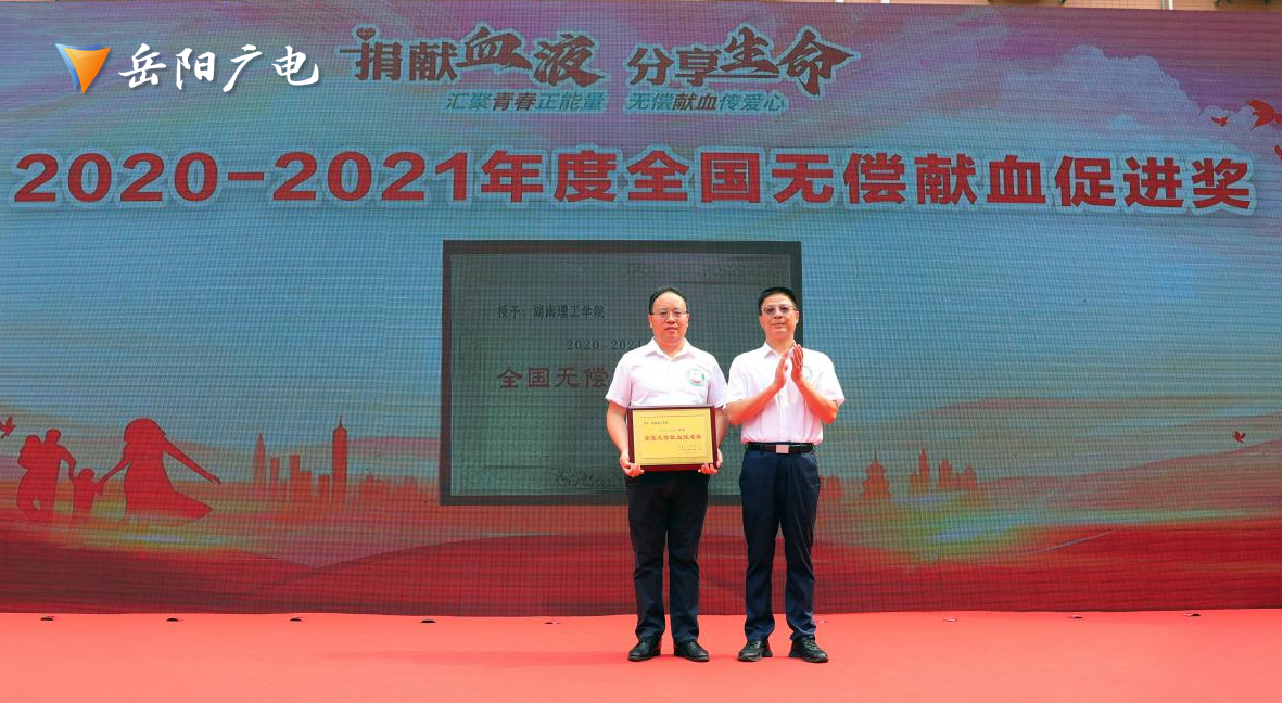 2020-2021年度表现突出的“全国无偿献血促进奖”湖南理工学院,丰小玉等8位“全国无偿献血终身荣誉奖”代表,“湖南省无偿献血先进县市区”平江县、汨罗市、云溪区在活动现场接受了表彰。岳阳市中心血站爱心献血屋也同时启用。市委宣传部、市疾控中心、天坛生物湖南君山单采血浆站有限公司等100余人参加无偿献血。