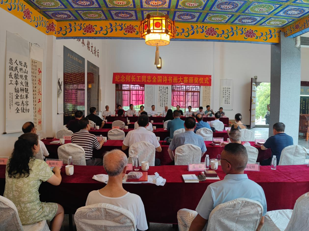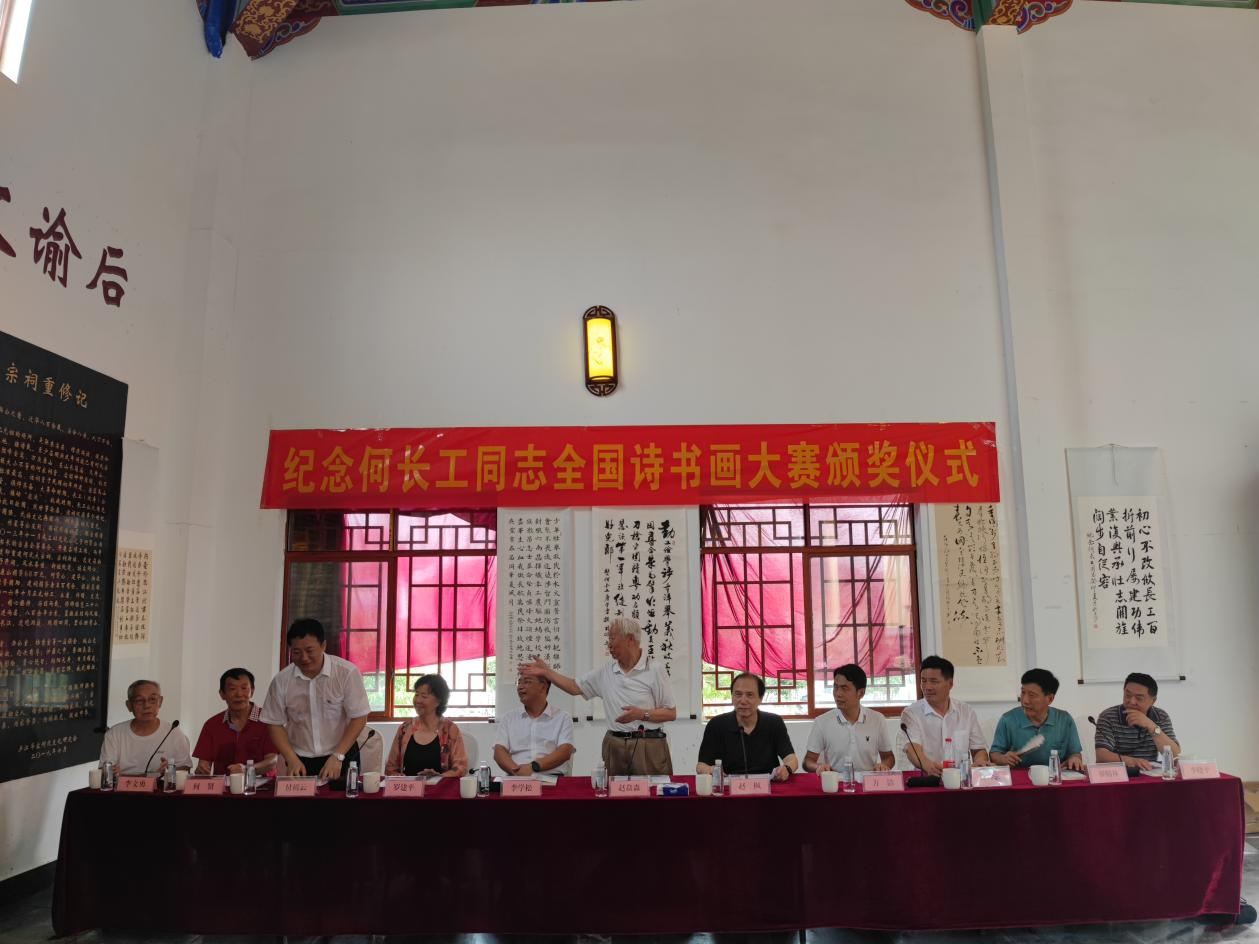 岳阳广电全媒体7月9日讯(记者/余小满 通讯员/饶青青)7月7日,为纪念中国共产党久经考验的共产主义战士、无产阶级革命家、卓越的军事家、军事教育家何长工同志,继承革命先辈光荣传统,由湖南省岳麓诗社、潇湘齐白石艺术研究院、华容县禹山镇联合主办,长沙市华容商会协办的“纪念何长工同志全国诗书画展暨颁奖仪式”在何长工同志故乡华容县禹山镇举行。