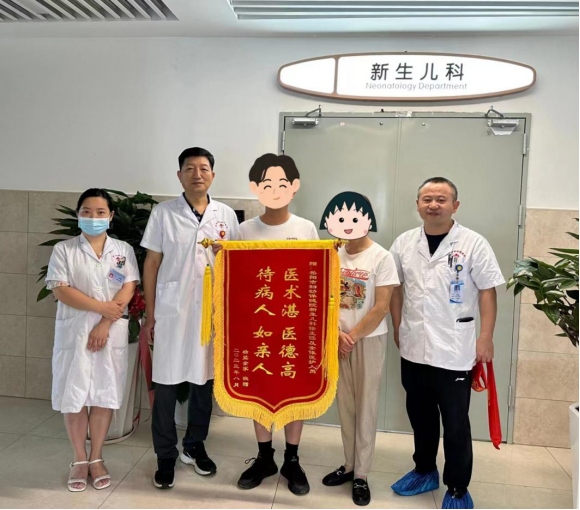岳阳广电全媒体讯(记者余佳敏 通讯员 孙明霞)8月21日,李先生和孩子的奶奶喜笑颜开地来到岳阳市妇幼保健院新生儿科,用力握住李鸿鸣主任与许德权副主任的手激动地说:“李主任、许主任,感谢你们救了我的孩子,等我家宝宝长大了,我们一定要让他知道是新生儿科的白衣天使救了他。”随后,将题为“医术湛、医德高、待病人、如亲人”的锦旗送给李鸿鸣主任,并与医生们合影留念。